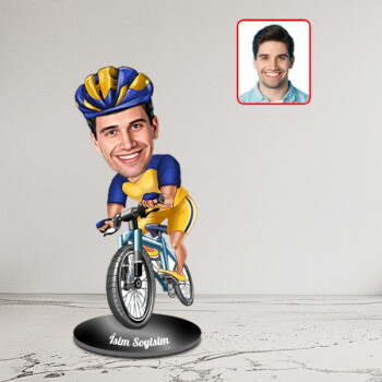 Kişiye Özel Bisikletçi Karikatür Biblo, bisiklet düşkünü sevdikleriniz, yakınlarınız, mesai arkadaşlarınız, iki teker tutkunları ve uzun yol bisikletçileri için tercih edilip tasarlanabilecek bir ürün olma özelliği taşıyor. Evleriniz, ofisleriniz, çalışma masalarınız ve vitrinlerinizi süsleyecek olan bu kişiye özel tasarım, ekonomik fiyatıyla bütçenizi de sarsmıyor. Bu özel tasarım karikatür biblo, hayatınıza anlam katan bireyler ve anmaya değer özel günler için tercih edilebilir. Her bakıldığında sizi anımsatacak olan bu ürün, üzerinden yıllar geçse de hatırasını korur.