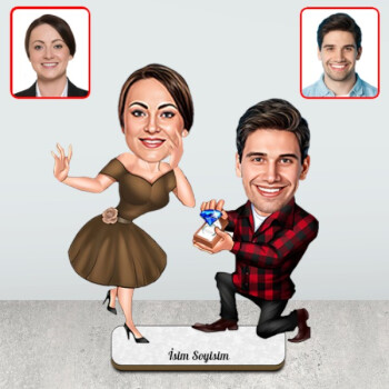 Kişiye Özel Evlenme Teklifi Biblosu, bireysel tasarımlara olanak tanıdığı gibi, hediyelik biblo olarak da tasarlanabilecek nitelikte oldukça estetik, dekoratif ve şık bir ürün olma özelliği taşıyor. Beraberinde gönderilen stand sayesinde devrilmeden kendi başına ayakta durabilen bu kişiye özel karikatür biblo, yaklaşık 20 cm yükseklik ve 15 cm genişliğe sahiptir. 3 mm kalınlıkta ahşap veya pleksi malzemeye işlenebilen bu kişiye özel tasarım için sipariş panelinden pleksi veya ahşap levha seçeneklerinden birini işaretleyebilirsiniz. Bu ürün için tek yapmanız gereken şey, sipariş panelinden tasarımını yapılmasını istediğiniz fotoğrafı bizlere ulaştırmak olacaktır. Jpg, png veya pdf formatında bizlere ulaştırabileceğiniz bu fotoğraflar, uygun ışık altında ve karşı açıdan çekilmiş olmalıdır. Uygun kontrast ve yüksek çözünürlüğe sahip fotoğraflar, çok daha verimli ve net baskılar elde etmemize yardımcı olacaktır.