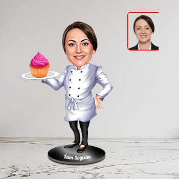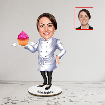 Kişiye Özel Kadın Chef Pastacı Karikatür Biblo