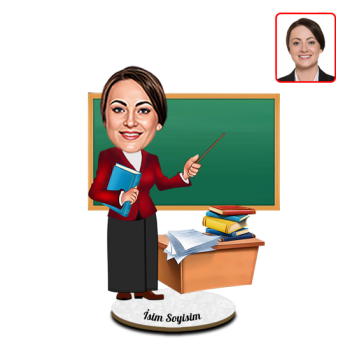 İsteğinize göre 3 mm kalınlıkta pleksi ya da ahşap levha üzerine işlenebilen bu ürün için, sipariş panelinden basılacak materyal seçiminde bulunabilirsiniz. Yine bu alandan, bizlere tasarımının yapılmasını istediğiniz fotoğraflarınızı jpg, png veya pdf formatında gönderebilirsiniz. Yaklaşık 14x4 cm boyutlara sahip olan stand sayesinde tek başına devrilmeden ayakta durabilen bu öğretmen tasarımlı karikatür biblo, resimlerinizin grafikerlerimiz tarafından karikatürize edilmesiyle ortaya çıkar. Bireysel, hediyelik ve promosyon amaçlı kullanımlara uygun olan bu ürün, farklı bir hediye konsepti arayanların tercihi olabilir. Evleriniz, iş yerleriniz, sınıflarınız, çalışma masalarınız veya vitrinleriniz için oldukça dekoratif bir görünüm sergileyen bayan öğretmen karikatürlü biblo, ısı, ışık, nem ve UV ışınlar gibi olumsuz etmenlere yıllar boyu direnebilen bir hatıra ürünüdür.