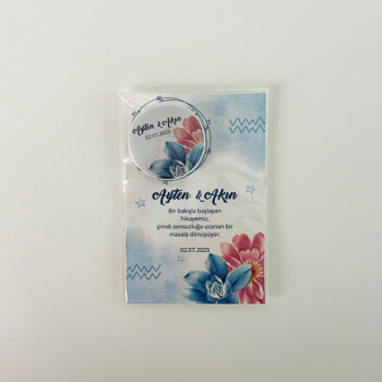Özel Gün Hatırası Buton Rozet, çantalarınız, ceketleriniz, panolarınız ve daha pek çok kullanım alanında tercih edebileceğiniz oldukça şık ve orijinal bir ürün. 44 mm çapta dairesel forma sahip olan bu buton rozet ürünü, dayanıklı ve hafif nitelikte alüminyum malzemeden imal edilmiştir. Hafif olduğu için kumaş yüzeyleri yıpratıp hasar vermez. Bu yüzden her türde kıyafet üzerinde güvenle sergilenebilir.