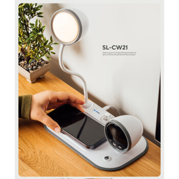 S-link SL-CW21 Beyaz Telefon Uyumlu Fast Şarj 15W Ayarlanabilir Led Işıklı LCD Ekran Double Alarmlı Masa Lambası