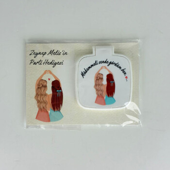 Minimal ve kompakt tasarımı ile acil ihtiyaç duyduğunuz her alanda imdadınıza koşacak olan bu hediyelik cep aynası, makyajınızı tazelemek istediğinizde, ‘ne kadar güzelim, dur bi daha göreyim’ dediğinizde ya da dilediğiniz her an size eşlik edecektir. İşlevsel olduğu kadar, estetik ve dekoratif bir görünüme de sahip olan kişiye özel makyaj aynası, uygun fiyatıyla sevdikleriniz için ideal bir hediyelik ürün olabileceği gibi, doğum günleri ve partiler için de oldukça kullanışlı bir hatıra ürünüdür.