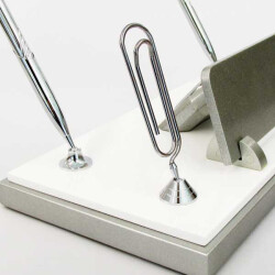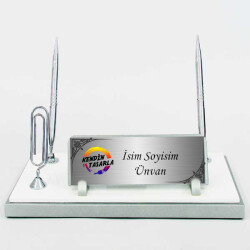 Beyaz Gümüş Ataşlı Masa İsimliği, çalışma masalarınıza itibar kazandıracak türden bir ürün olma özelliği taşıyor. Dekoratif, prestij sahibi ve estetik görünüme sahip olan bu ahşap masa isimliği, bireysel kullanımlara açık olduğu gibi, hediyelik masa isimliği olarak da idealdir. Yeni iş hediyesi veya terfi hediyesi bağlamında değerlendirebileceğiniz bu kişiye özel tasarım, özel ve resmî kurumlarda tercih edilebilecek türden bir ürün olma özelliği de taşıyor.