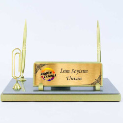 Gold Gümüş Not Tutacaklı Ahşap Masa İsimlik