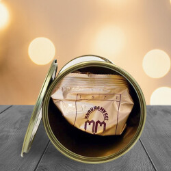İsme Özel Konserve Kutusu otantik görünümü ve şık tasarımı sayesinde içerisinde bulunan Mehmet Efendi Türk Kahvesini kullandıktan sonra bile kapağı temiz ve zahmetsiz bir şekilde üst kısmında bulunan açma halkasıyla hafif güç uyguladığınızda kendiliğinden kolayca sökülerek açılacaktır. Değer verdiğiniz eşyalarınız arasında Kişiye Özel Konserve Kutusunun yer alacağından emin olabilirsiniz. Bulunduğu ortama ayrı otantik hava katarak dikkatleri üzerine toplayacak, misafirlerinizin ilgi odağı olmasının yanısıra dayanıklı yapısıyla yıllarca farklı alanlarda kullanımını sağlayabilirsiniz.
