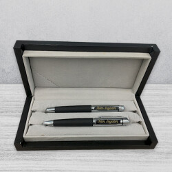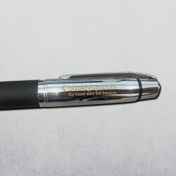 - Kişiye Özel Gümüş Siyah Kalem Seti üzerine istediğiniz yazıyı yazarak kalemlerinizi özelleştirebilirsiniz.