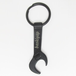 Makine mühendisi hediye bağlamında düşünülebilecek bu anahtarlık ürünü, 0,7x2,5 cm baskı alanına sahiptir. Anahtar halkası ile beraber 8,5x2 cm ebatlara sahip bu ürün, paslanma ve kararmaya dirençli metalden imal edilmiştir. Mat siyah renge sahiptir ve lazer kazıma baskı tekniği kullanılmaktadır. Yalnızca isim, yazı ve logo tasarımları uygulanabilecek bu ürüne isteğe göre tek veya çift taraflı lazer kazıma işlemi yapılabilmektedir. İngiliz anahtarı formundaki tasarımı ile şişe açacağı olarak kullanabilen özelliği sayesinde işlevsel bir ürün olabilme niteliğini de kanıtlar.