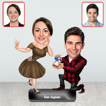 Kişiye Özel Evlenme Teklifi Biblosu, bireysel tasarımlara olanak tanıdığı gibi, hediyelik biblo olarak da tasarlanabilecek nitelikte oldukça estetik, dekoratif ve şık bir ürün olma özelliği taşıyor. Beraberinde gönderilen stand sayesinde devrilmeden kendi başına ayakta durabilen bu kişiye özel karikatür biblo, yaklaşık 20 cm yükseklik ve 15 cm genişliğe sahiptir. 3 mm kalınlıkta ahşap veya pleksi malzemeye işlenebilen bu kişiye özel tasarım için sipariş panelinden pleksi veya ahşap levha seçeneklerinden birini işaretleyebilirsiniz. Bu ürün için tek yapmanız gereken şey, sipariş panelinden tasarımını yapılmasını istediğiniz fotoğrafı bizlere ulaştırmak olacaktır. Jpg, png veya pdf formatında bizlere ulaştırabileceğiniz bu fotoğraflar, uygun ışık altında ve karşı açıdan çekilmiş olmalıdır. Uygun kontrast ve yüksek çözünürlüğe sahip fotoğraflar, çok daha verimli ve net baskılar elde etmemize yardımcı olacaktır.