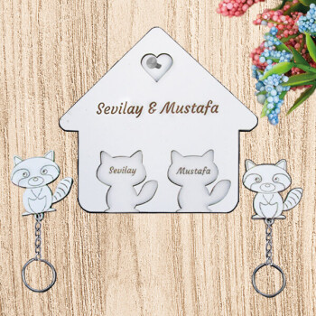 Kişiye Özel İki Anahtarlıklı Anahtar Askısı | Rakunlu