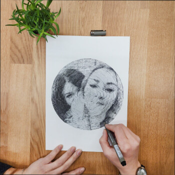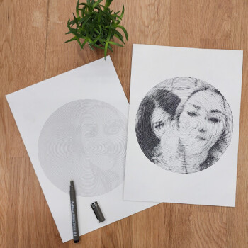 Kişiye Özel Kendin Boya Striped Portre, kendiniz için veya sevdikleriniz için sipariş edeceğiniz ve ortaya çıkışında sizin de emeğinizin olduğu bir kişiye özel tasarım üründür. A4 (210x297mm) boyutlarındaki 350 gr/m² tuale fantezi dokulu kâğıt üzerine aktarılacak olan bu ürün, fotoğraflarınızın ince şeritler halinde ve dairesel formda lazer yazıcılar ile basılmasıyla ortaya çıkar. 185 mm çaptaki dairesel tarzdaki fotoğrafın içinde yer alan iç içe ince boşluklu şeritlerin boyanmasıyla ortaya çıkacak olan estetik görünüme sahip bu kişiye özel tablo, lazer çıktılar ile basıldığı için silinmeye ve deformasyona dirençli yapıdadır.