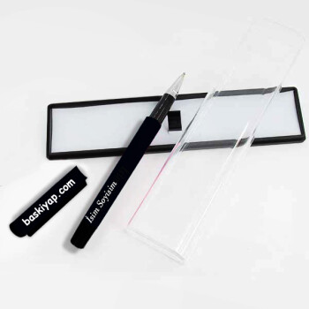 Bireysel sipariş ya da promosyon kalem için tercih edebileceğiniz bu ürüne, küçük bir ilave ücret ödeyerek 16x3,5x2 cm ebatlarında şeffaf kapaklı plastik kutu ekletebilmeniz mümkündür. Bu sayede çok daha estetik bir sunum şekline kavuşan bu kutulu hediyelik kalem ile sevdiklerinizi mutlu edebilirsiniz. Şimdiden keyifli alışverişler diliyor ve kişiye özel siyah silikon kaplama metal kaleminiz ile atacağınız tüm imzaların size mutluluklar getirmesini temenni ediyoruz.