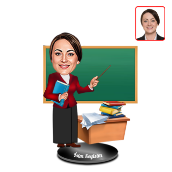 İsteğinize göre 3 mm kalınlıkta pleksi ya da ahşap levha üzerine işlenebilen bu ürün için, sipariş panelinden basılacak materyal seçiminde bulunabilirsiniz. Yine bu alandan, bizlere tasarımının yapılmasını istediğiniz fotoğraflarınızı jpg, png veya pdf formatında gönderebilirsiniz. Yaklaşık 14x4 cm boyutlara sahip olan stand sayesinde tek başına devrilmeden ayakta durabilen bu öğretmen tasarımlı karikatür biblo, resimlerinizin grafikerlerimiz tarafından karikatürize edilmesiyle ortaya çıkar. Bireysel, hediyelik ve promosyon amaçlı kullanımlara uygun olan bu ürün, farklı bir hediye konsepti arayanların tercihi olabilir. Evleriniz, iş yerleriniz, sınıflarınız, çalışma masalarınız veya vitrinleriniz için oldukça dekoratif bir görünüm sergileyen bayan öğretmen karikatürlü biblo, ısı, ışık, nem ve UV ışınlar gibi olumsuz etmenlere yıllar boyu direnebilen bir hatıra ürünüdür.