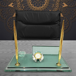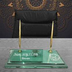 Yeşil Kristal Altın Kalemli Masa İsimliği